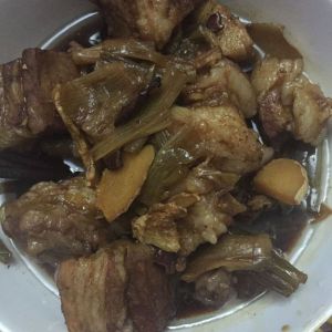 依次放入冰糖,生抽,老抽(这个少放,色重),黄酒,有方法说,菜的咸度只靠酱油,我觉得还是放点盐比较好,觉得黄酒太多,可以兑少许的水,总之感觉个人口味调整,把这些都放入高压锅。