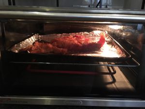 猪颈肉洗净,除蜂蜜外所有腌料腌6小时以上,我一般放冷藏过夜,锡纸包好,烤箱预热,200度15分钟,掀开锡纸,涂一次酱汁,再烤10分钟,翻面涂蜂蜜,烤5分钟,再翻另一面涂蜂蜜烤5分钟。(共烤35分钟,具体看个人烤箱)