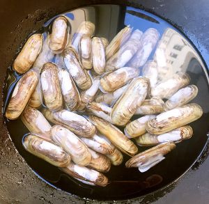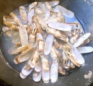 蛏子放入锅中倒入适量清水加入少量盐大火煮五分钟即可