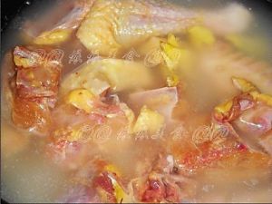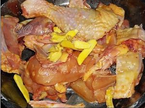 鸡洗干净后斩件,用盐、生抽、白糖、生粉、姜片腌10分钟入味;(有时间