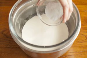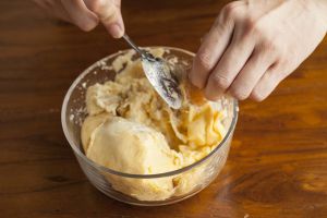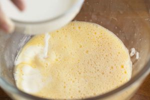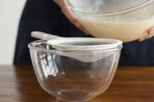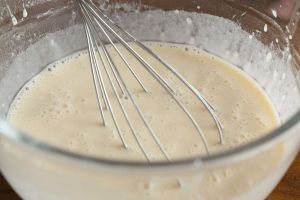 加入少许牛奶糊充分拌匀后,倒回牛奶糊中拌匀。