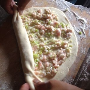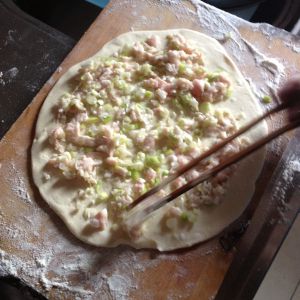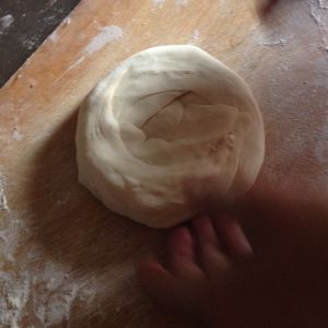 和好的面要偏软的,饧一会儿,取一块擀圆