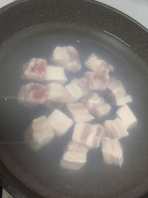 首先把五花肉洗干净,冷水一起下锅,等水开了放一点料酒去腥,然后撇去浮沫,把肉捞出来用水洗干净表面的脏东西,放在一旁待用。