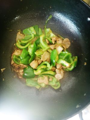 入锅小炒,肉8分熟,青椒入锅,翻炒