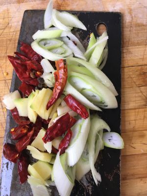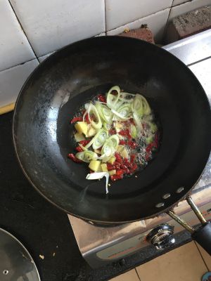 倒入料酒,生抽,老抽,蚝油,糖,翻炒均匀,