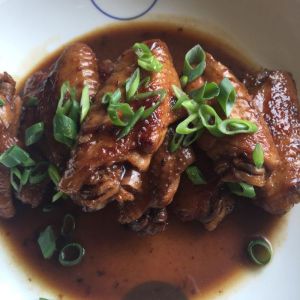 鸡翅洗净后放在盆中加入姜片;葱段;糖;盐;生抽;料酒;一个八角;倒入可乐腌制2、3个小时