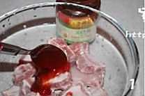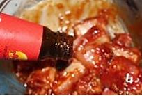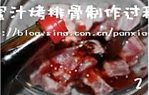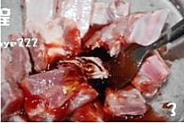 肋排洗干净。除去多余水份后切成小块。在排骨中加入叉烧酱,酱料放的多少,要看排骨的多少,还有自己的喜好。