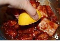 挤入一点柠檬汁。少量的柠檬汁不仅可以祛除肉的腥味,还能让肉质变得松软一些。