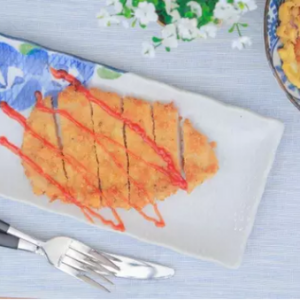 ▲到这一步炸猪排就做好了,可以搭配番茄酱来吃,口感就没那么腻了。如果担心油炸热量高,可以用空气炸锅。也可以放到烤箱里,用200度烤15-20分钟。