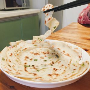 再按扁擀成薄面饼,就可以下不粘锅烙饼咯