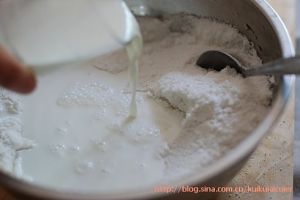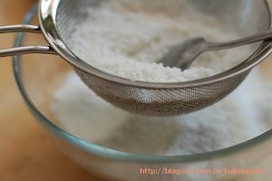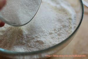 过筛后糯米粉、泡打粉、小苏打和砂糖混合均匀;