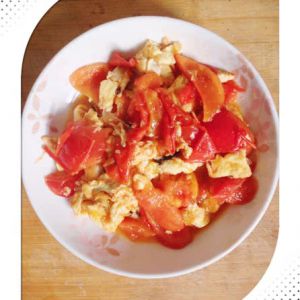 再将鸡蛋倒入锅中,翻炒几下,将鸡蛋用锅铲切成小块状,使西红柿汁能浸入鸡蛋里。关火,出锅~