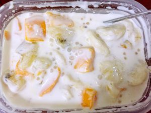 最后放入备好的水果,可以放入冰箱冷藏,口感会更好