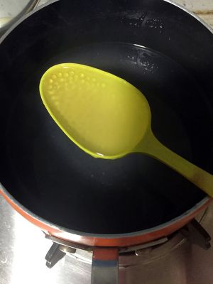 西米煮好后用筛子去掉粘稠的水,放入冷水中过一遍,让它更Q更弹,再用凉白开过一遍,滤掉水放入碗中