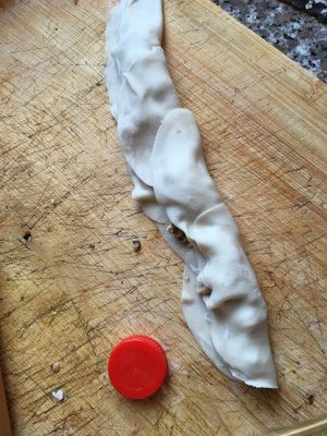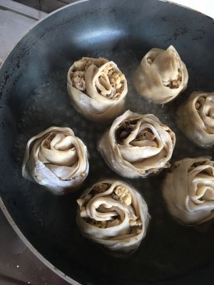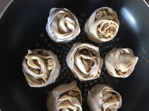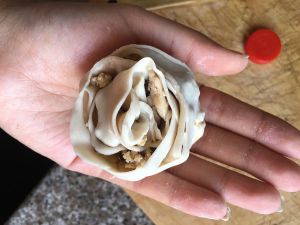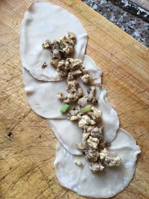 因为馅料熟的 水收干就好 皮还有韧劲撒点葱