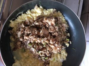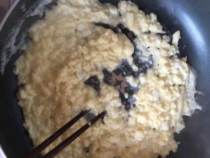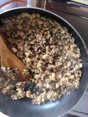 加入之前剁好的 加葱 一点料酒 一点生抽屌鲜 炒熟!