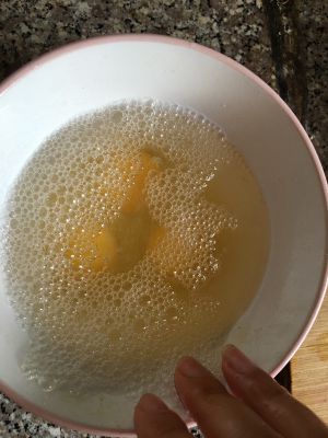 三个鸡蛋加一倍水 加盐 加一点糖比较蓬松 打散
