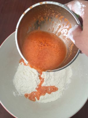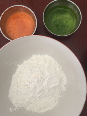 榨汁机分别榨好胡萝卜汁和菠菜汁