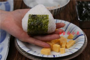 将海苔贴在饭团上即可