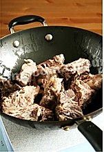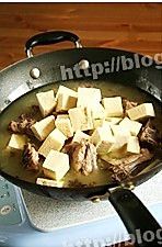 炒锅中放油,油热后放入八角、花椒、葱、姜爆香,放入猪脊骨翻炒均匀,加料酒烹香,倒入足量热水没过骨头,大火煮沸,小火煮两个小时;