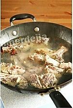 煮锅中放入凉水,放入猪脊骨,大火煮沸后,撇去浮沫,捞出猪脊骨;