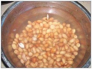 花生米先泡水两三个钟头,锅放水烧开放入花生米烫一分钟