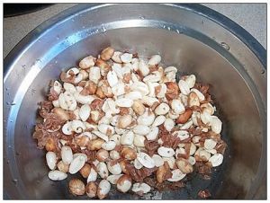 沥水,捡干净皮,脱皮花生仁加小苏打粉放入高压锅加六倍的水,水开后转小火煮二十分钟