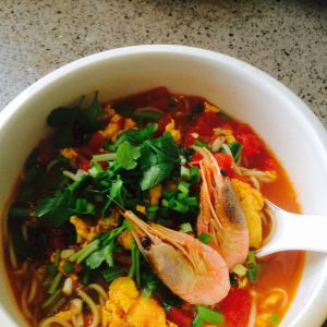 西红柿,蔬菜(根据自己喜好选择),鸡蛋,姜,香葱,子虾。当然,少不了面条!