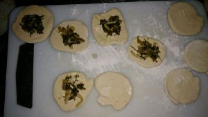 放鱼板粒的饼皮。