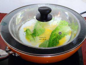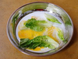 在米浆上面放生菜;