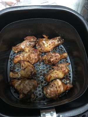 预热空气炸锅200度,5分钟。把腌好的鸡翅根放入炸锅,摆放好,200度10分钟,然后翻面继续10分钟出锅。出了好多油看来平时真的是多吃了好多的油,难怪这么胖