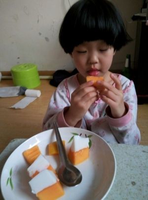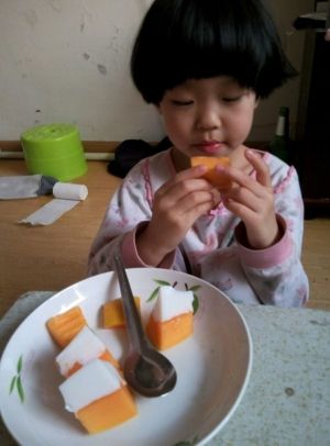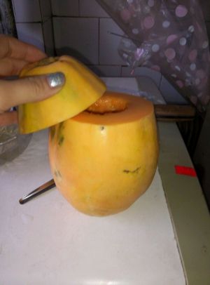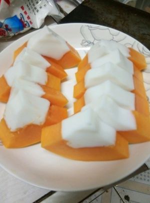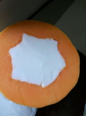 木瓜切开,刮去籽还有白絮(我也不知道那玩意叫啥