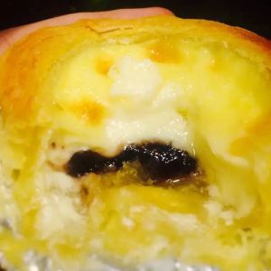 想吃蓝莓口味的可以把材料倒入蛋挞皮后加入些蓝莓酱进去