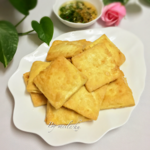 翻面,同样中火将豆腐煎至呈金黄色即可关火。