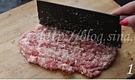 200克猪肉用刀剁成细末,尽量剁细,越细越好,注意猪肉的选择要肥瘦掺半,瘦肉和肥肉的比例以4:1为好,瘦肉尽量选择梅子肉,肥肉不要带皮,肉中不要夹筋,否则会影响口感,还有不要用搅拌机搅,一定要用刀剁,因为搅拌机搅的不能保证粗细均匀,也不保证能全部剁断,如果觉得用刀剁得麻烦,可以让菜市场搅肉的师傅在机器里反复多搅几次,而家用搅拌机就不用试了,功率太小,一般都不怎么搅得匀,还不如用刀剁咧;