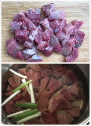 牛腩切丁,过水去膜,小火慢炖至烂,牛肉的选择对这道菜来说还是很重要的,而牛腩适合炖,所以一般都会选用它