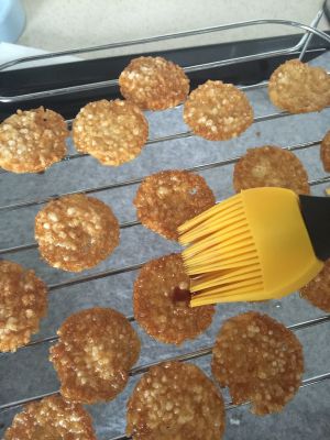 沥油后趁热刷上酱油或直接在酱油里蘸一下。