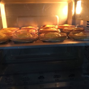 烤箱200度预热10分钟后,中层放入蛋挞,烤制15分钟,出炉即可