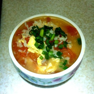加入大量水 滚开后 倒入蛋液 再倒入米饭 加盐 盖锅盖煮滚