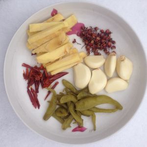 把上述做的汤放冷后加两勺白醋,然后尝一下味道,看是不是自己喜欢的口味,可以再进行调整~