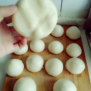 3.揉面,就是使劲使劲,没有别的方法,分成合适的大小,建议不要太大,因为熟了还会大一圈的。