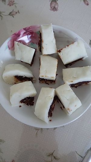 蒸熟的山药用料理机搅成泥状,我因为没机器所以手工捣烂的,这样会有块状的影响口感。