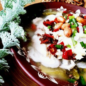 鱼片用盐搓至起胶,冲水四遍,控干水,用盐,鸡精,鱼露,胡椒粉,生粉拌匀腌会儿(这个很关键)