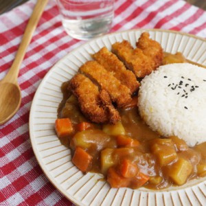 米饭用碗装好,压实,倒扣在盘子,边上围上咖喱,上面铺切好的鸡排