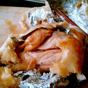我三个鸡腿用三杯面粉加水混合成面团,包在锡纸外。
