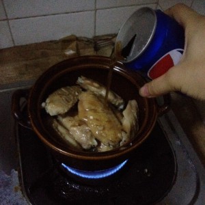 把煎好的鸡翅放入沙锅,加入可乐,炖煮二十分钟。出锅时加入葱花,清淡又香甜的可乐鸡翅就出锅啦!