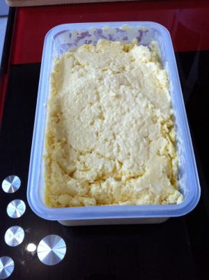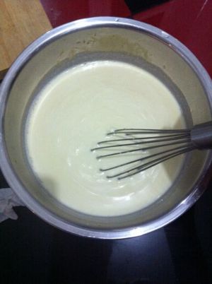 我这个是之前做的图片,按别人的方子直接趁热倒入的淡奶油,其实应该将奶油打到6分发,再跟蛋黄液混合