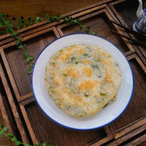8克中粉倒入碗里,锅中葱段捞起,热油倒入面粉中,快速搅拌,油酥就做好了。