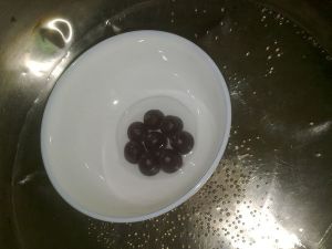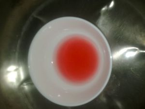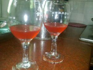 (额。。。这是草莓的,上面那张蓝莓味的没照,用来顶替一下)蒸融以后QQ糖浆还没有完全与水融合,要搅拌均匀。