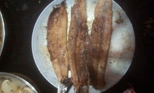 将鱼洗净,对半切开。将五香粉,盐,味精,料酒,酱油,放入鱼中浸泡15-20分钟。